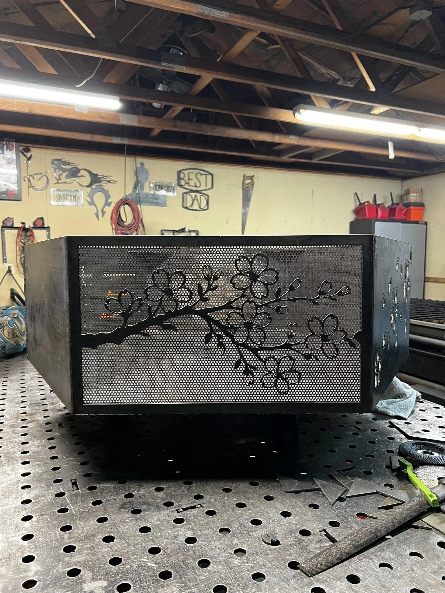 Cost ranges from $1,000-1,500 depending on the design. With personalized CNC Cutout Panels and lid. Includes materials and fabrication. Heat resistant paint to prevent rusting.