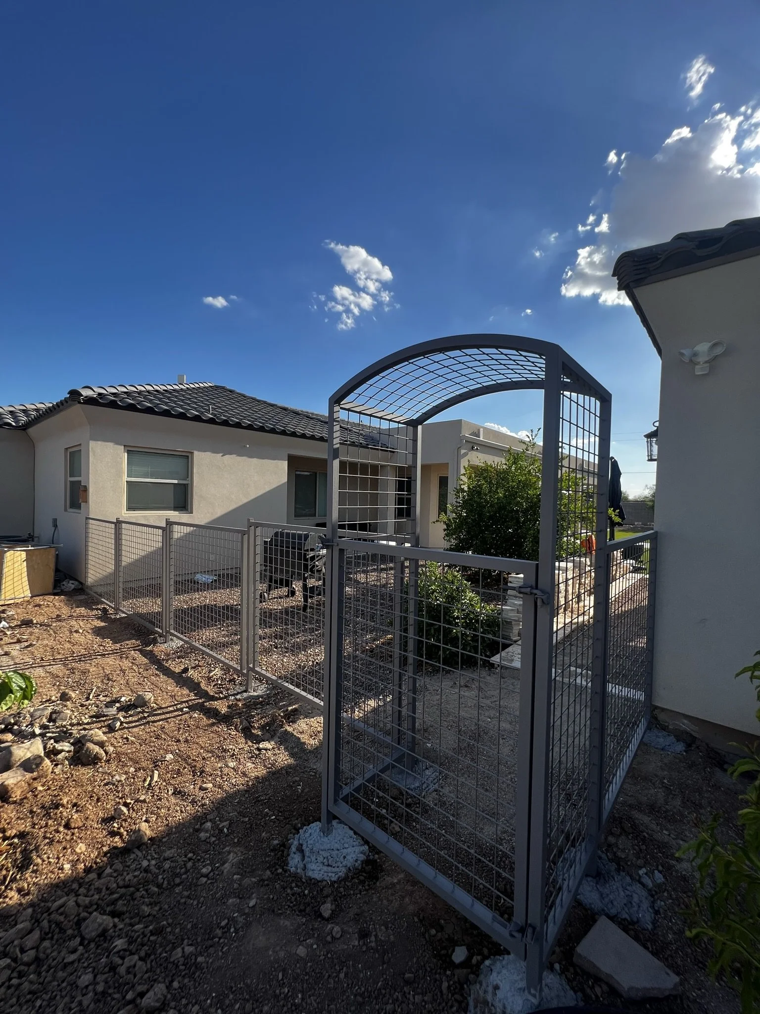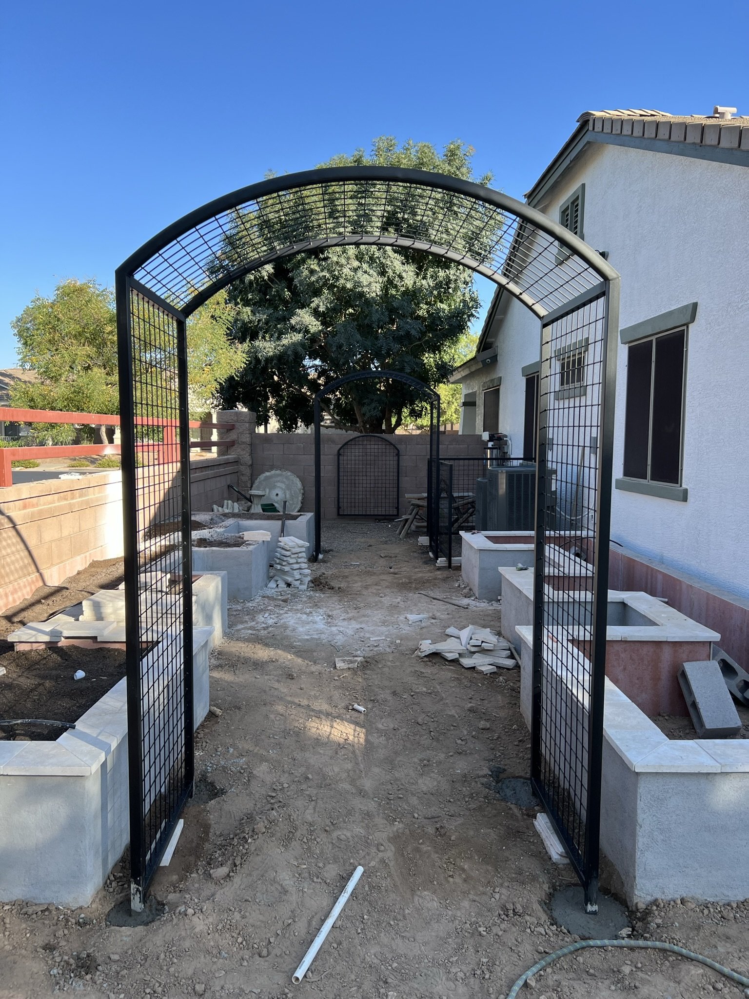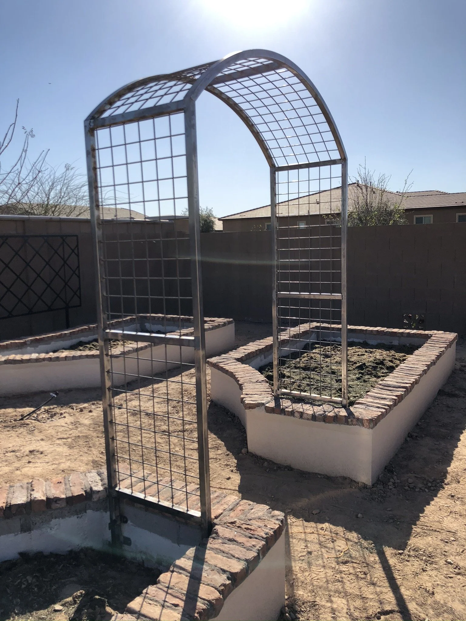 Average cost $250 for smaller sizes, includes materials and fabrication. Made with 1.5” Square Frame and 3”x3” Welded Wire Mesh Insert. Curved tops, Installation and powder coating available at additional cost.