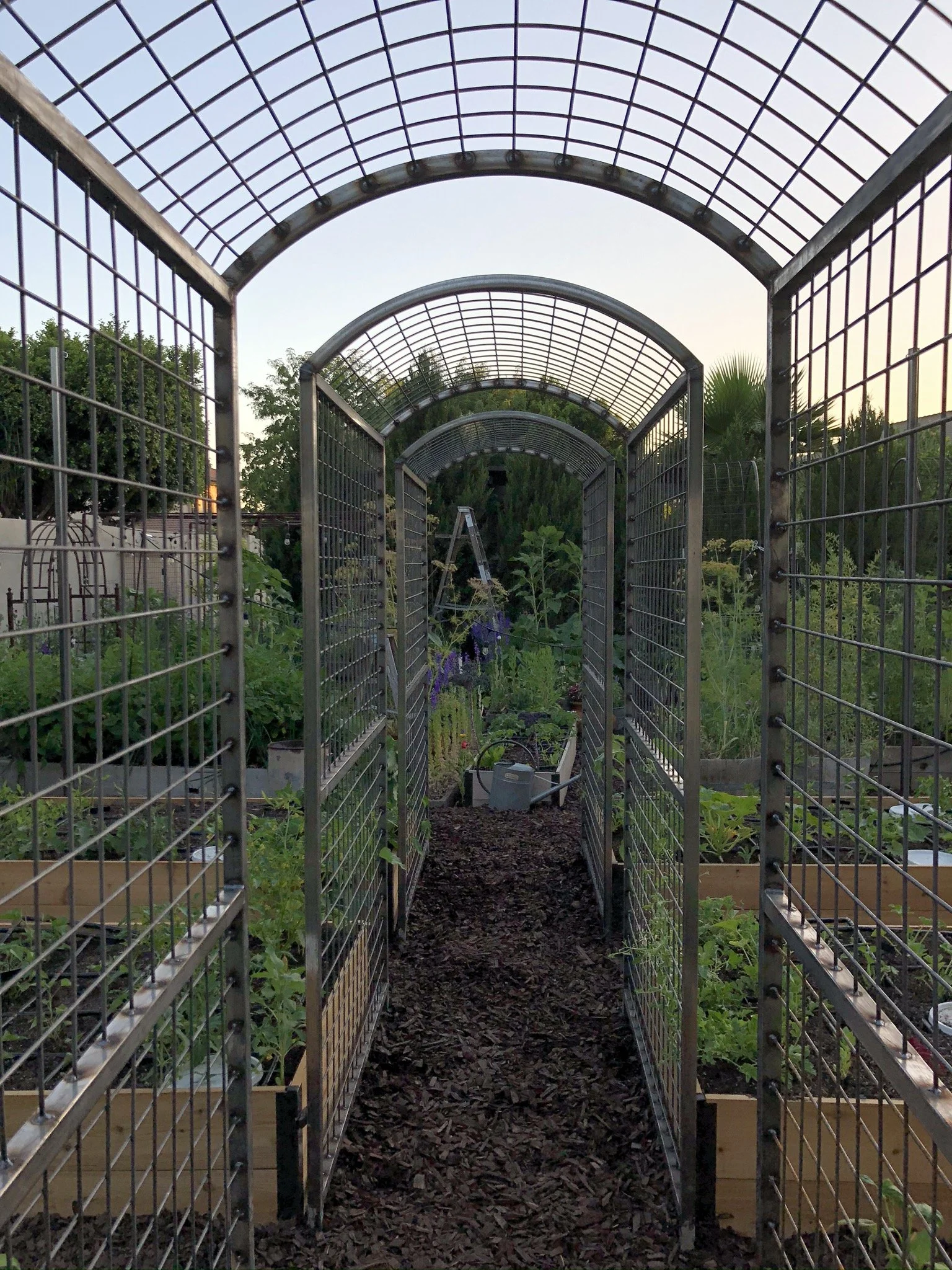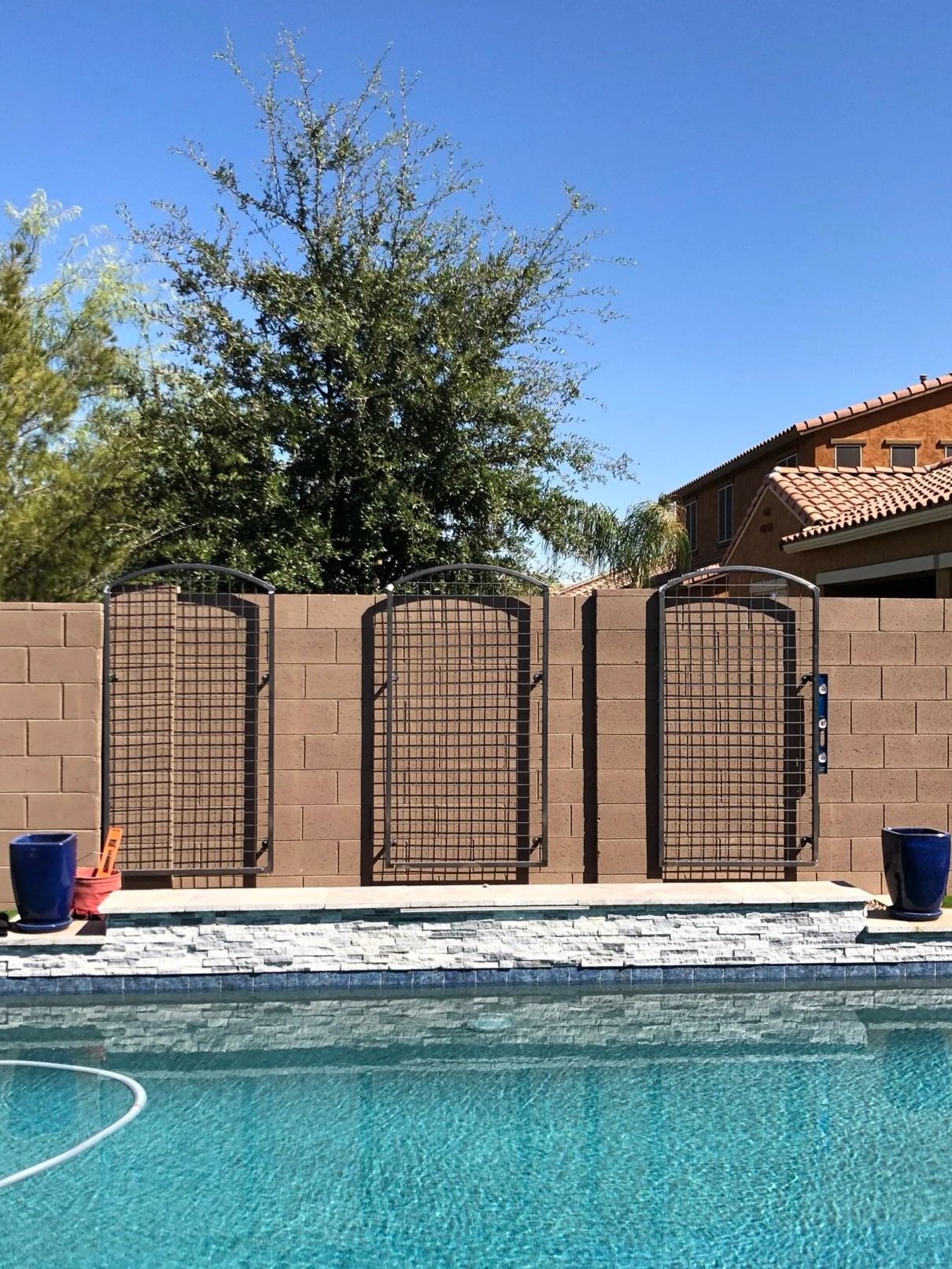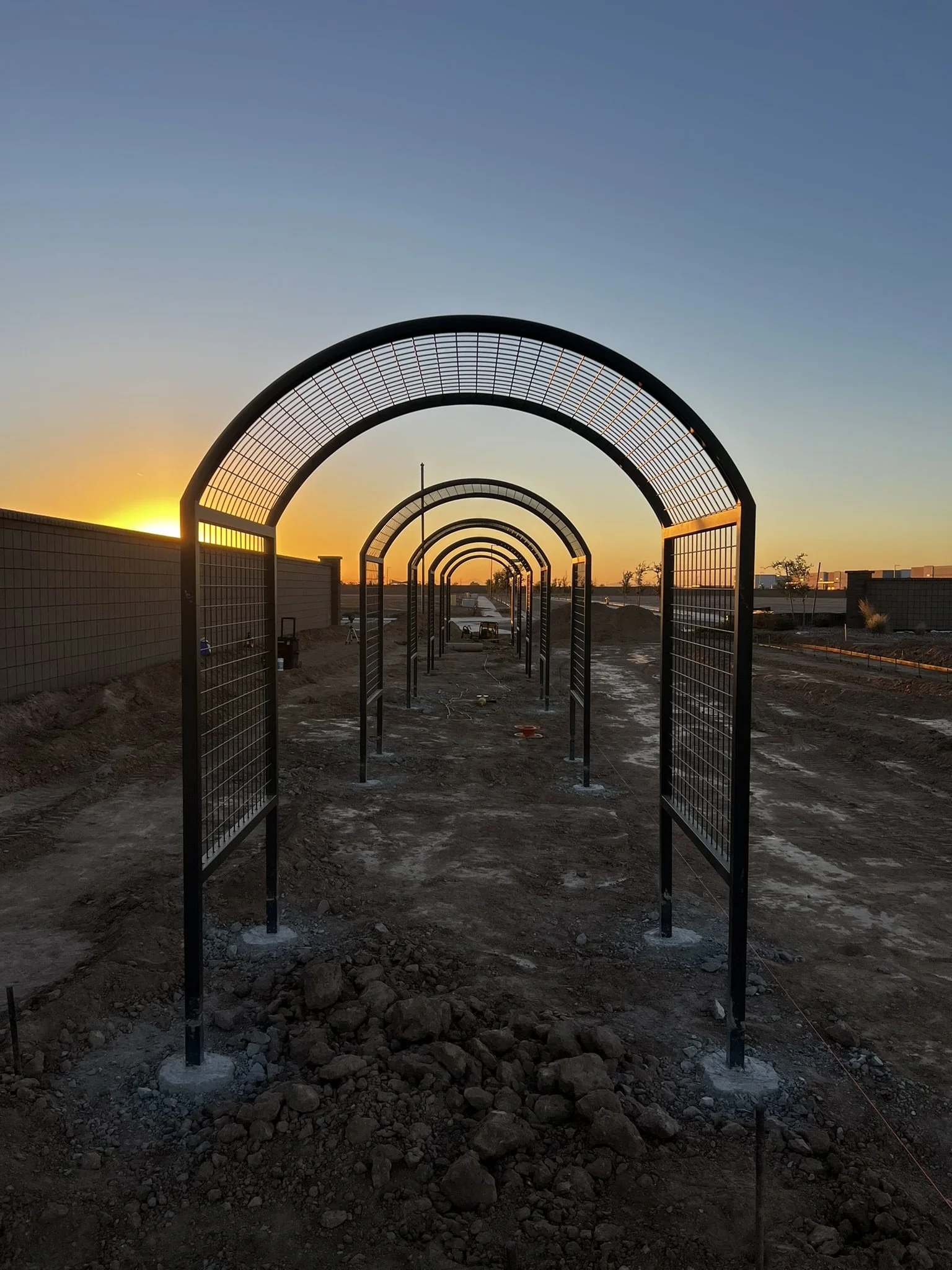 Average cost $250 for smaller sizes, includes materials and fabrication. Made with 1.5” Square Frame and 3”x3” Welded Wire Mesh Insert. Curved tops, Installation and powder coating available at additional cost.